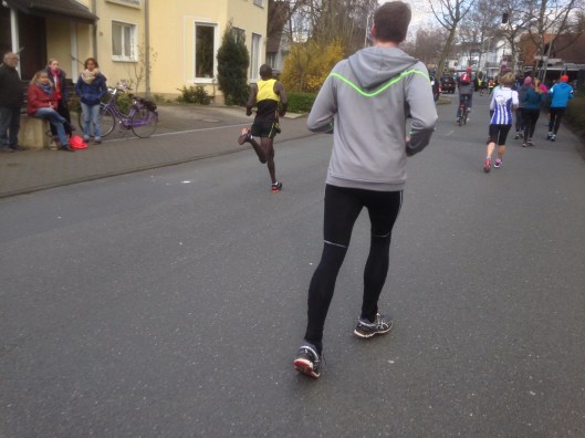 Kurz vor Ende der ersten Runde überrundeten uns dann noch die ersten Drei. Da kamen wir uns gleich noch langsamer vor. Zu diesem Zeitpunkt wussten wir noch nicht, dass hier heute die Zweitschnellste Zeit in der Geschichte des Osterlaufs gelaufen wurde.