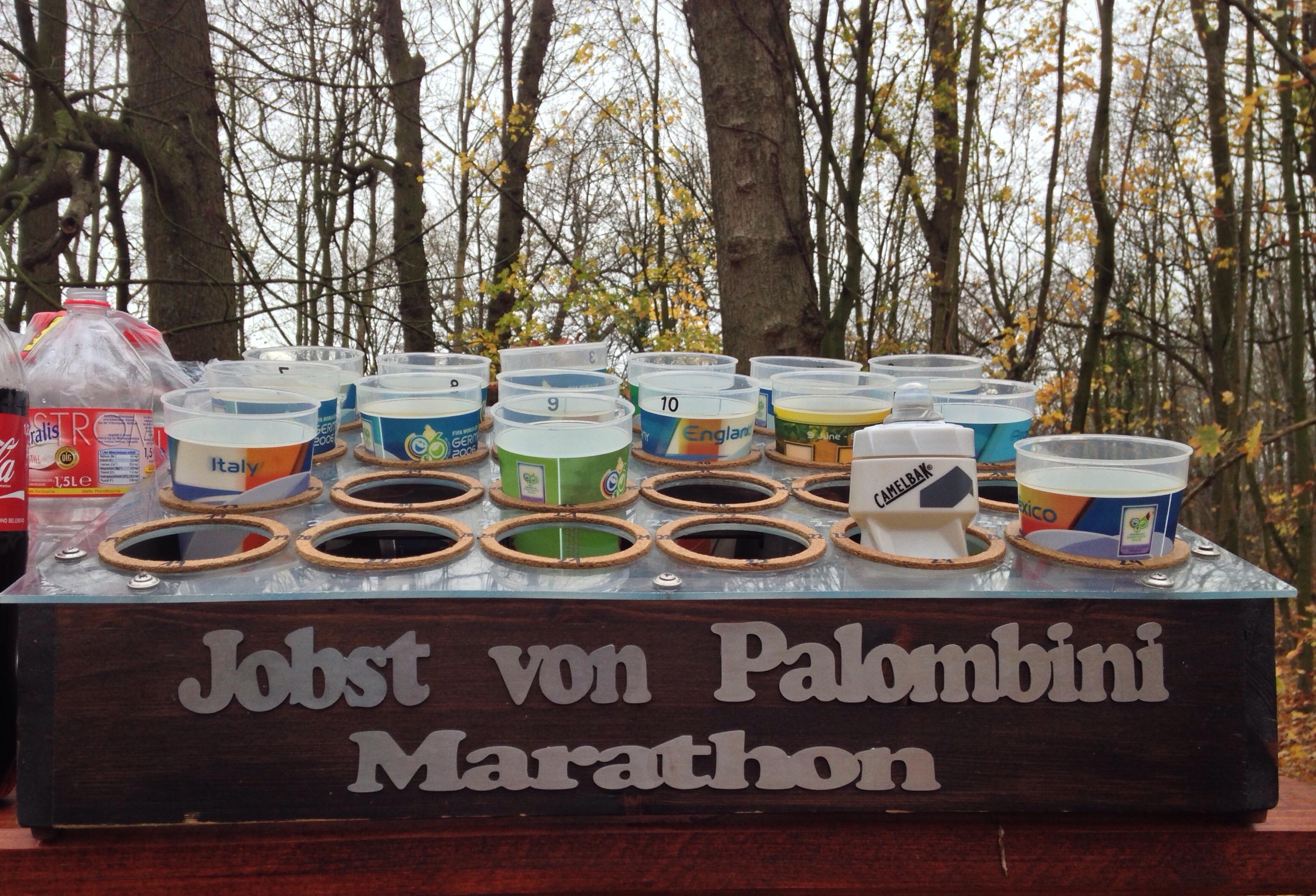 Nach der Begrüßung und einem kurzen Briefing ging es auch gleich auf die moderne Tartanbahn. Wir liefen, so wie es sich in der Leichtathletik gehört, gegen den Uhrzeigersinn. Schnell sah man wer es heute eilig hatte und wer nicht. Die ersten Überrundungen ließen nicht lange auf sich warten. Die meiste Zeit hatte ich jemand neben mir. Man ist eigentlich nie alleine wenn man auf der Bahn unterwegs ist. Ganze 106 Runden zu laufen bietet aber nicht nur den Vorteil der Geselligkeit. Man kommt auch alle 400 Meter am Verpflegungspunkt vorbei.
