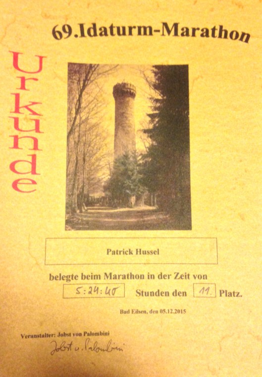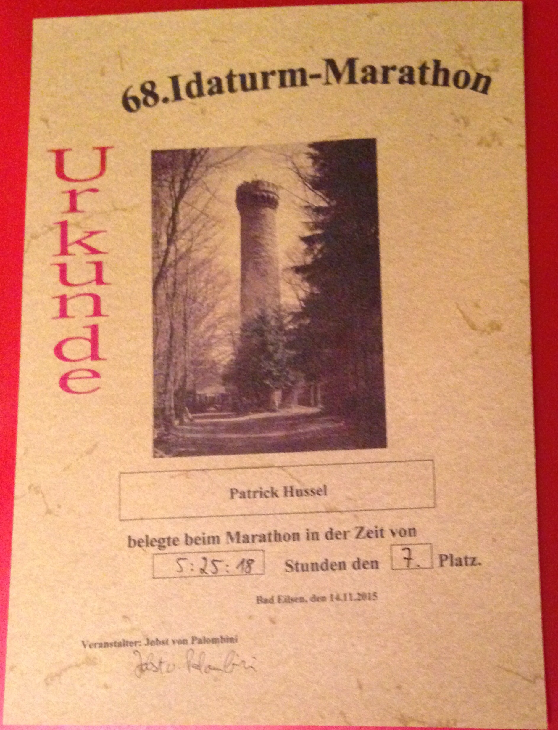 Punkt 0:08 meldete ich mich heute zum Idaturm-Marathon an. Nicht ganz zehn Stunden später war auch schon der Start, dem eine Schweigeminute für die Opfer des Terroranschlages in Paris letzte Nacht vorausging.
