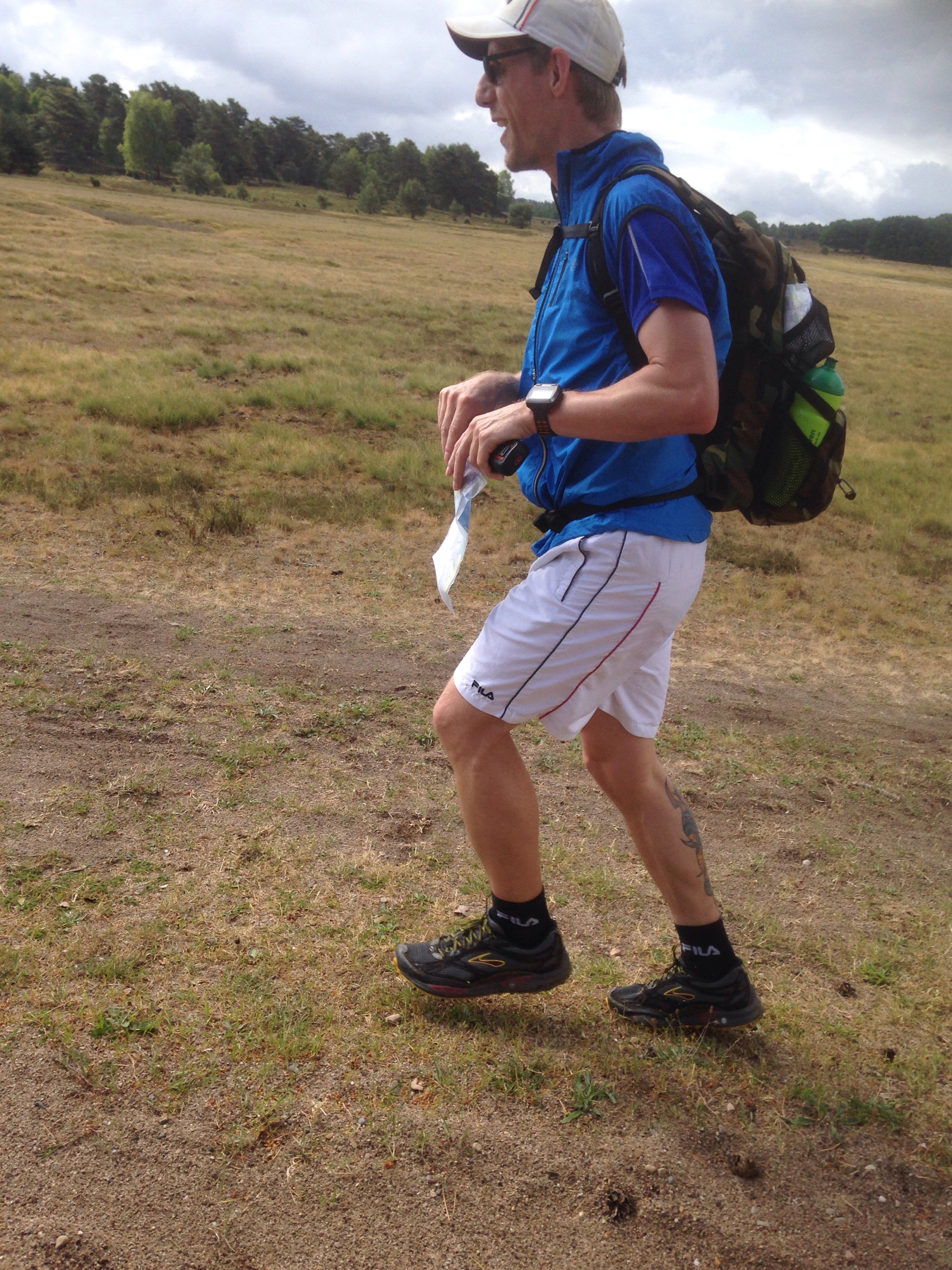 Danilo und ich bildeten zunächst mit Jörg Clausen eine Dreiergruppe. Jedoch konnte ich die Pace nicht halten und wir mussten Jörg nach gut 20 km ziehen lassen. Danilo hätte zwar vorerst mithalten können, da er aber kein eigenes GPS besaß blieb er bei mir. Er wollte den Umgang mit meinem Etrex lernen und übernahm es für das heutige Rennen. Am ersten Verpflegungspunkt sahen wir Jörg nochmal kurz, dann war er endgültig weg.