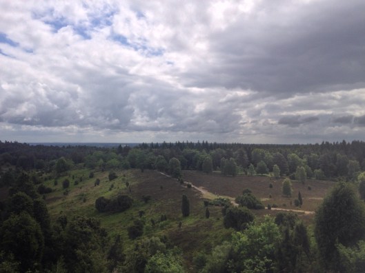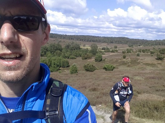 Wir erklommen den 169 m hohen Wilseder Berg, der höchsten Erhebung der nordwestdeutschen Tiefebene. Von hier hatten wir einen herrlichen Ausblick über unseren nächsten Streckenabschnitt. Und der zog sich gefühlt ganz schön in die Länge. Ein 80er überholte uns. Ich glaube, es war Holger Kanzog. Na wenigstens waren wir nicht alleine unterwegs. Noch nicht. Wir hatten ja noch ein ordentliches Stück vor uns.