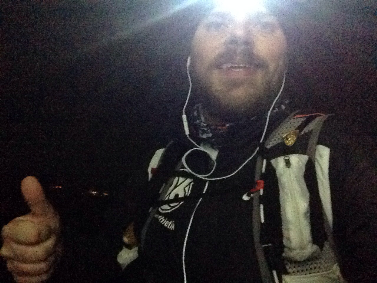 Endlich ging es wieder bergab. Erstmal. Ich passierte die Marathonmarke gegen 23:39 Uhr. Mehr als die Hälfte lag nun hinter mir. Zur Feier folgte auch sofort wieder ein längerer Anstieg.