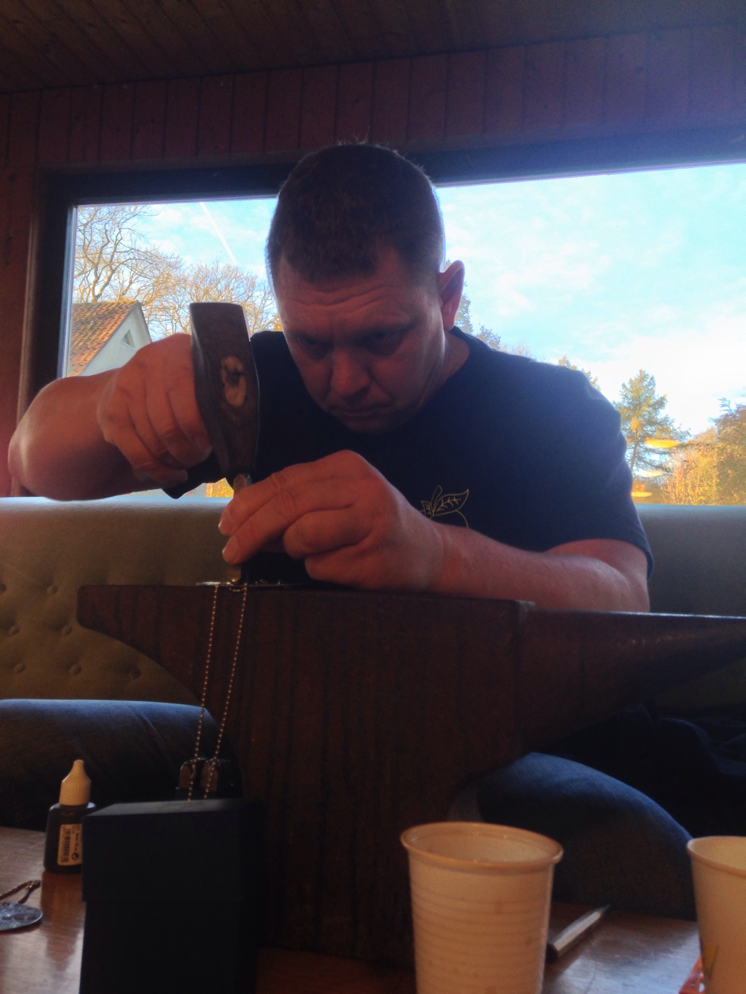 Im Ziel gönnte ich mir eine leckere Suppe zum Frühstück. Michael verewigte meine Zielzeit auf der Hundemarke. Hier „graviert“ der Chef noch selber. Ohne Aufpreis.